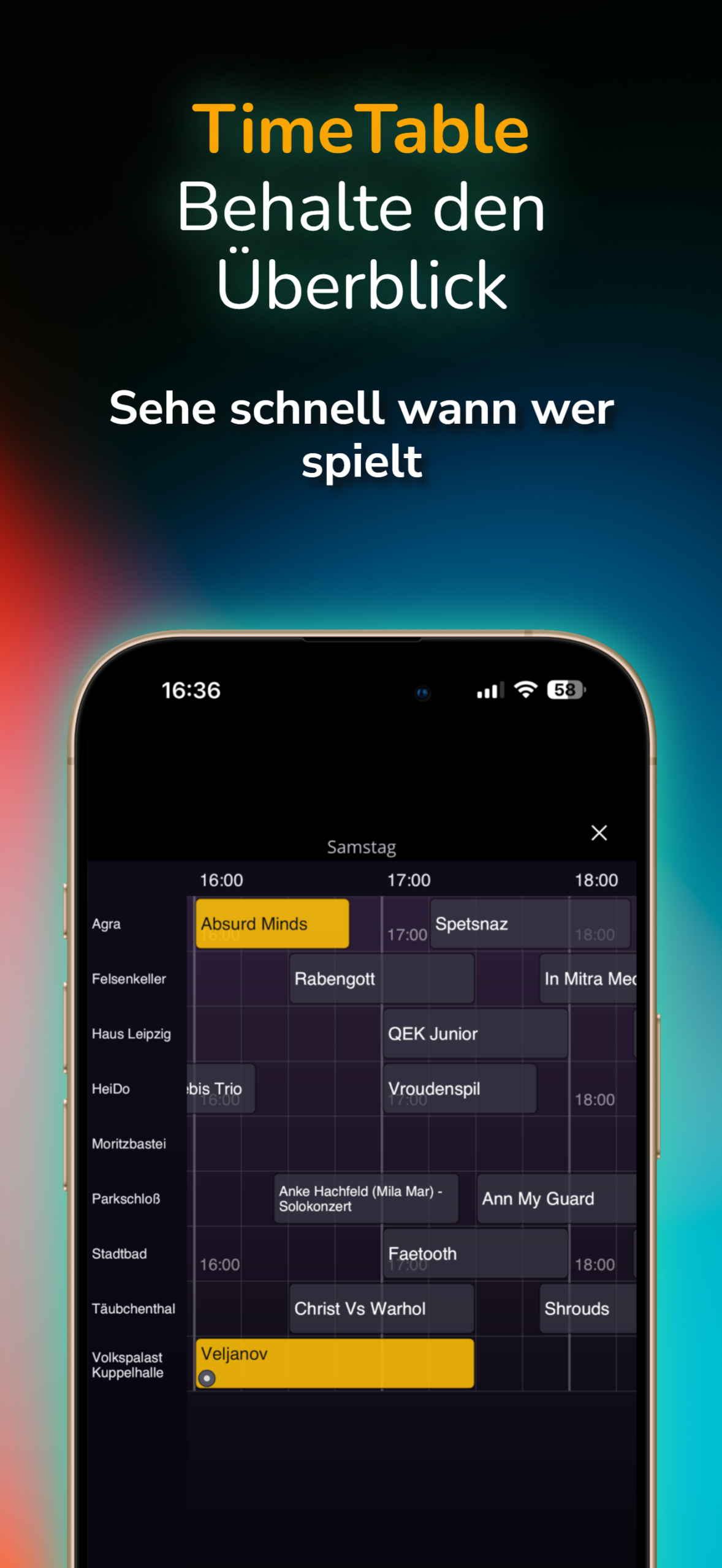 Details zum Programmpunkt Mit einem Klick erhältst du Informationen zum Programmpunkt. Wer und wo spielt wann. Außerdem kannst du
