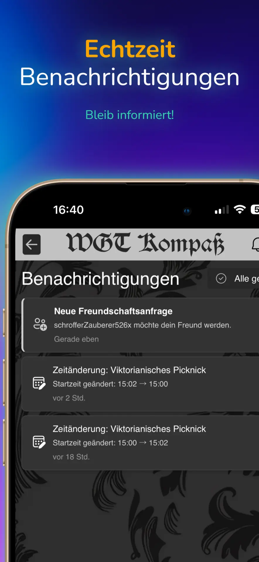 Push-Mitteilungen Aktuelle News und Änderungen am Programm bekommst du in Echtzeit.
