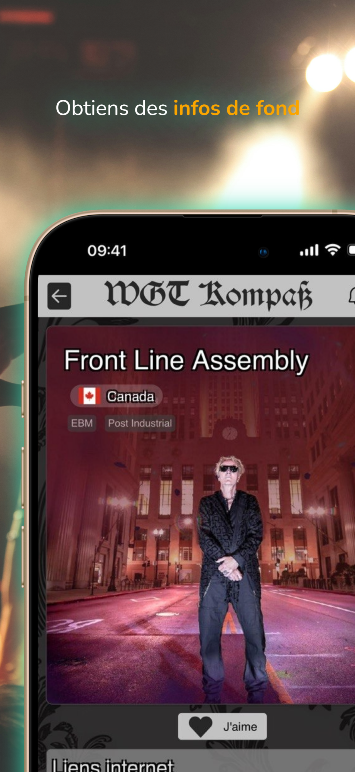 Informations sur tous les artistes toutes les activités du programme, y compris les soirées, les lectures et bien plus encore. Tous les lieux du WGT Organise ton festival dans l'application