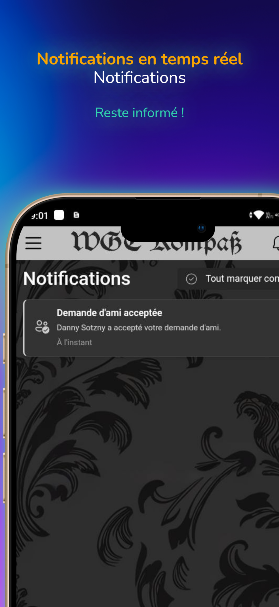 Grâce à l'application, tu reçois toutes les dernières actualités directement sur ton smartphone.
